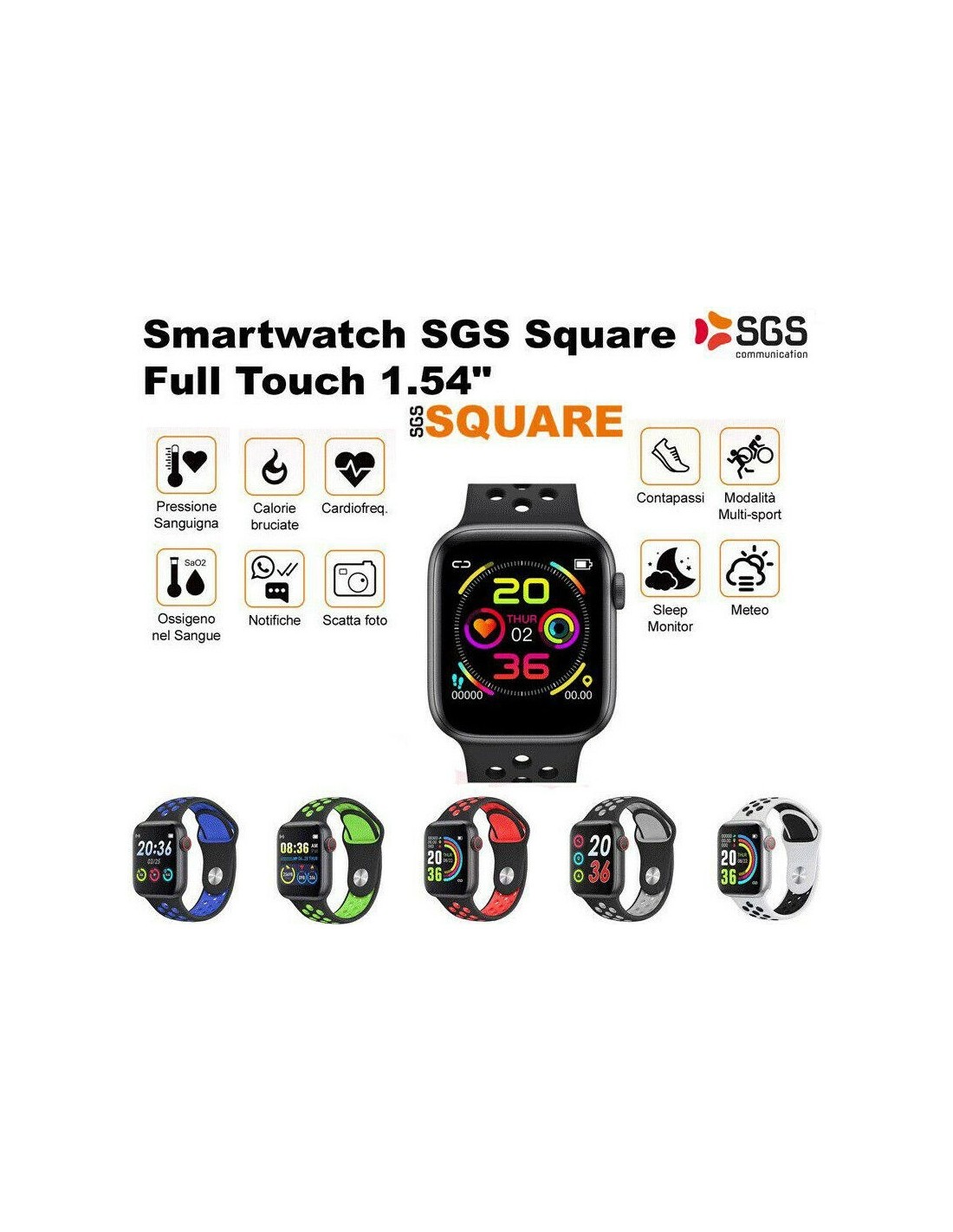 Smartwatch SGS Square Full Touch 1.54 Cinturino Black e Blue