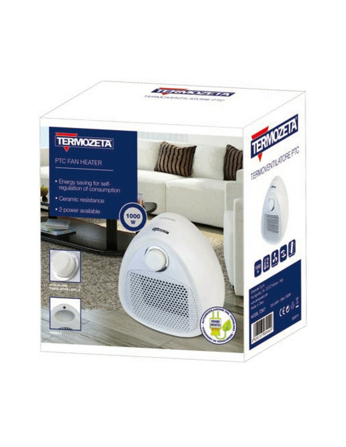 TERMOZETA TermoVentilatore PTC 1000W2 livelli di temperaturaVentilazioneAntiribaltamento
