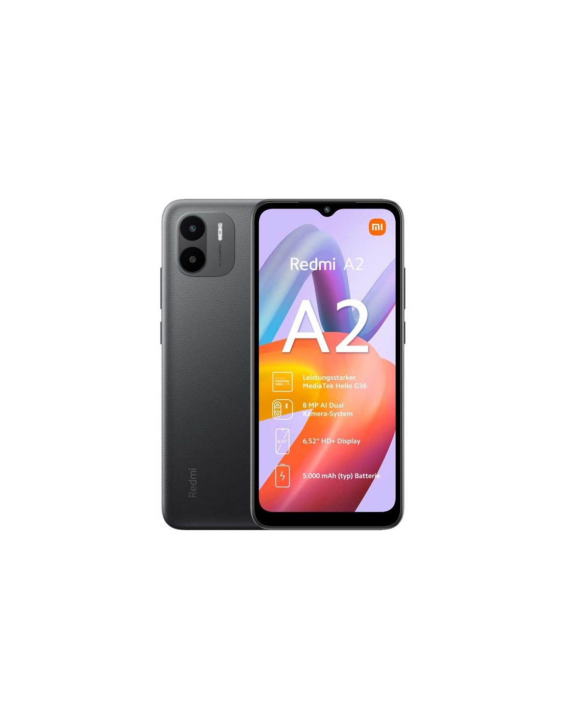 Le specifiche tecniche di Redmi A2 sono basate su un chipset MediaTek: l' entry level monta il SoC Helio G36 (octa-core con Cortex-A53 fino a 2,2 GHz). Lato memorie troviamo 2 GB di RAM LPDDR4X e 32 GB di storage eMMC 5.1, espandibile fino a 1 TB tramite microSD. Il tutto è alimentato da un batteria da 5.000 mAh con il supporto alla ricarica da 10W (tramite un'anacronistica porta micro USB).